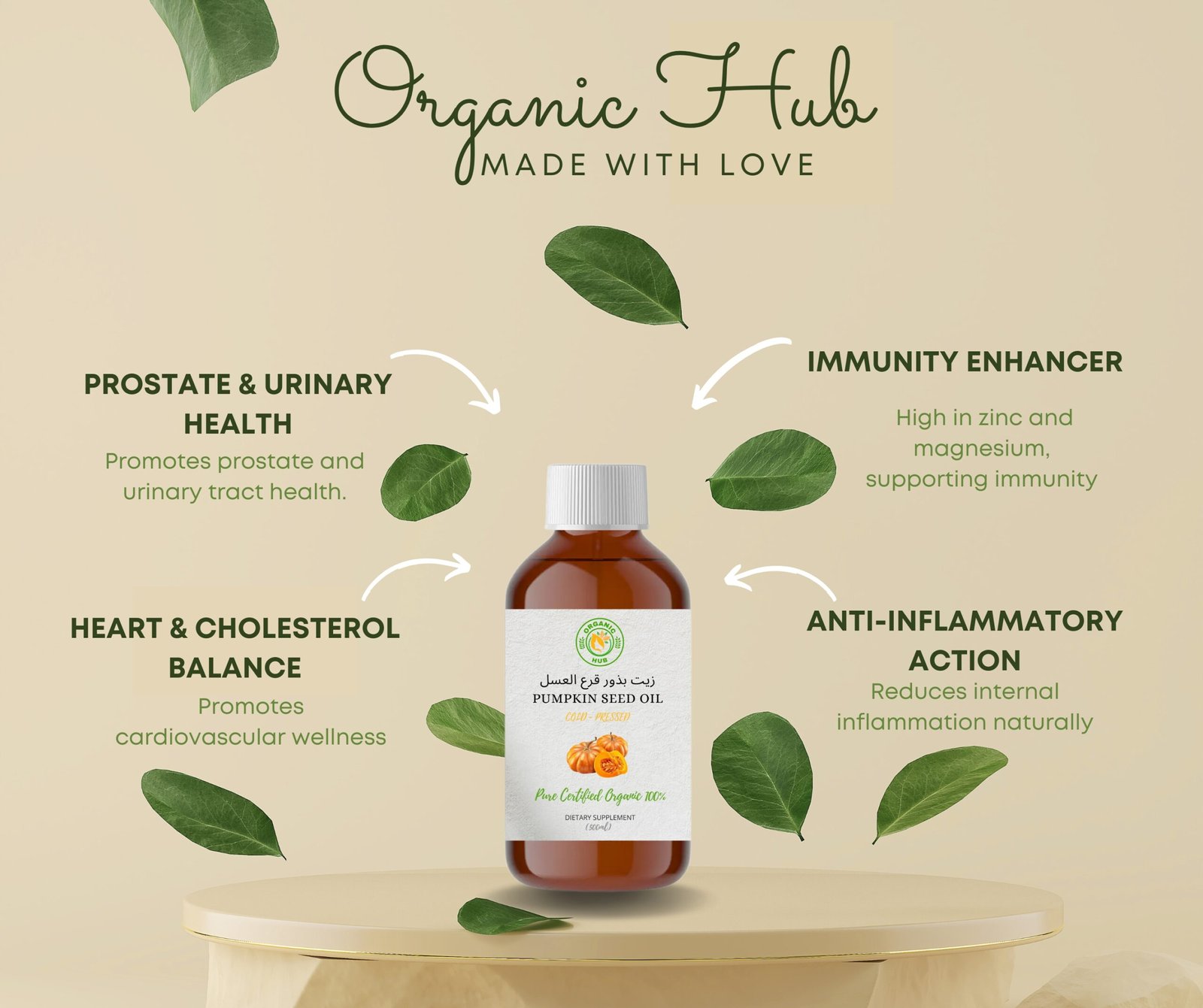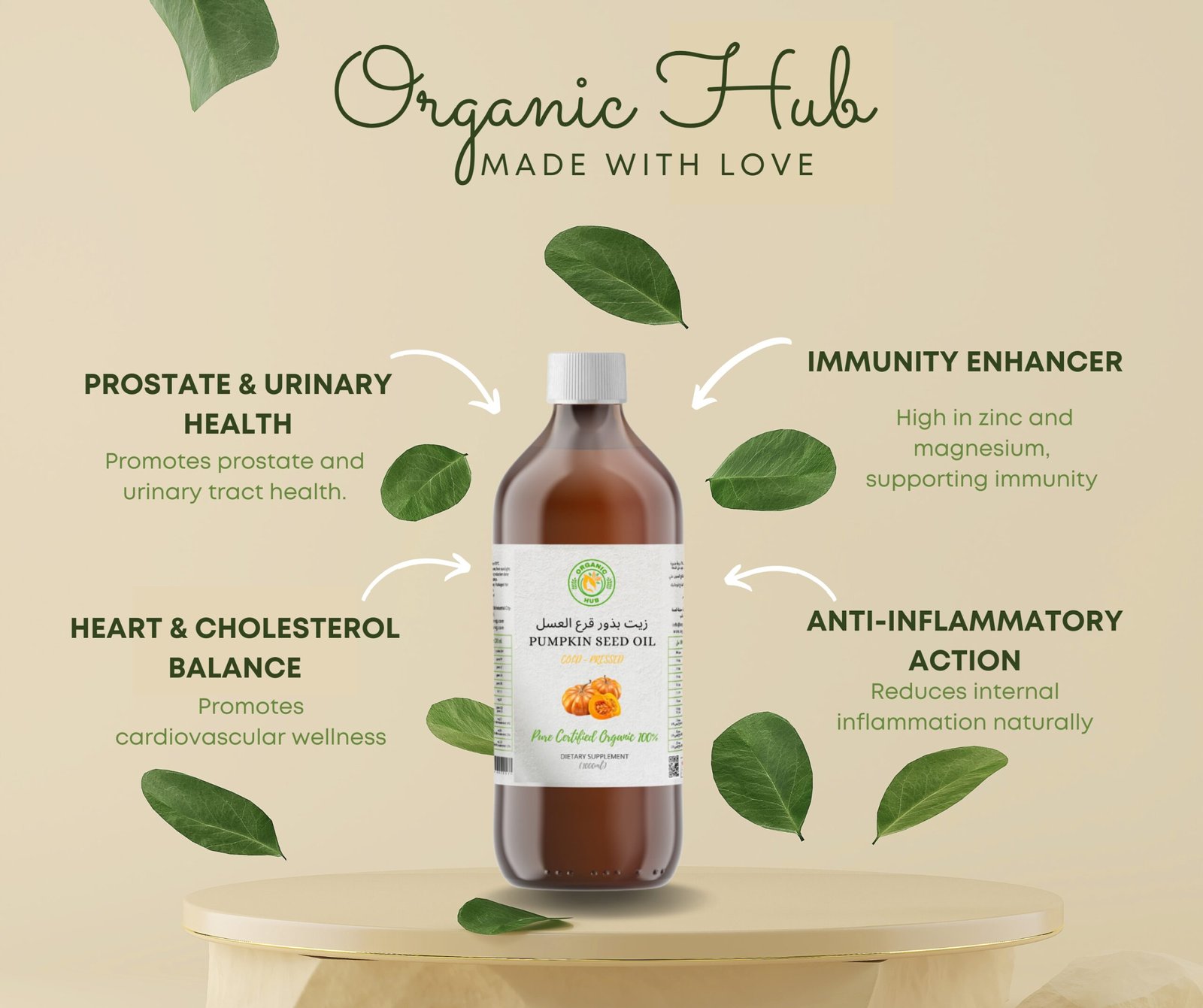 Natural cold pressed pumpkin seed oil has a perfectly balanced composition of polyunsaturated fatty acids: myristic, palmitic, palmitoleic, stearic, oleic, linoleic, linolenic, arachidic, gadoleic and behenic, which is not found in such quantities in other oils – only in natural pumpkin seed. This oil is extremely rich in vitamins and nutrients including vitamins A, E, B1, B2, B6, C, K and PP, plus phospholipids, tocopherol, flavonoids and carotenoids, magnesium, iron, selenium, zinc and omega 3,6 and 9.