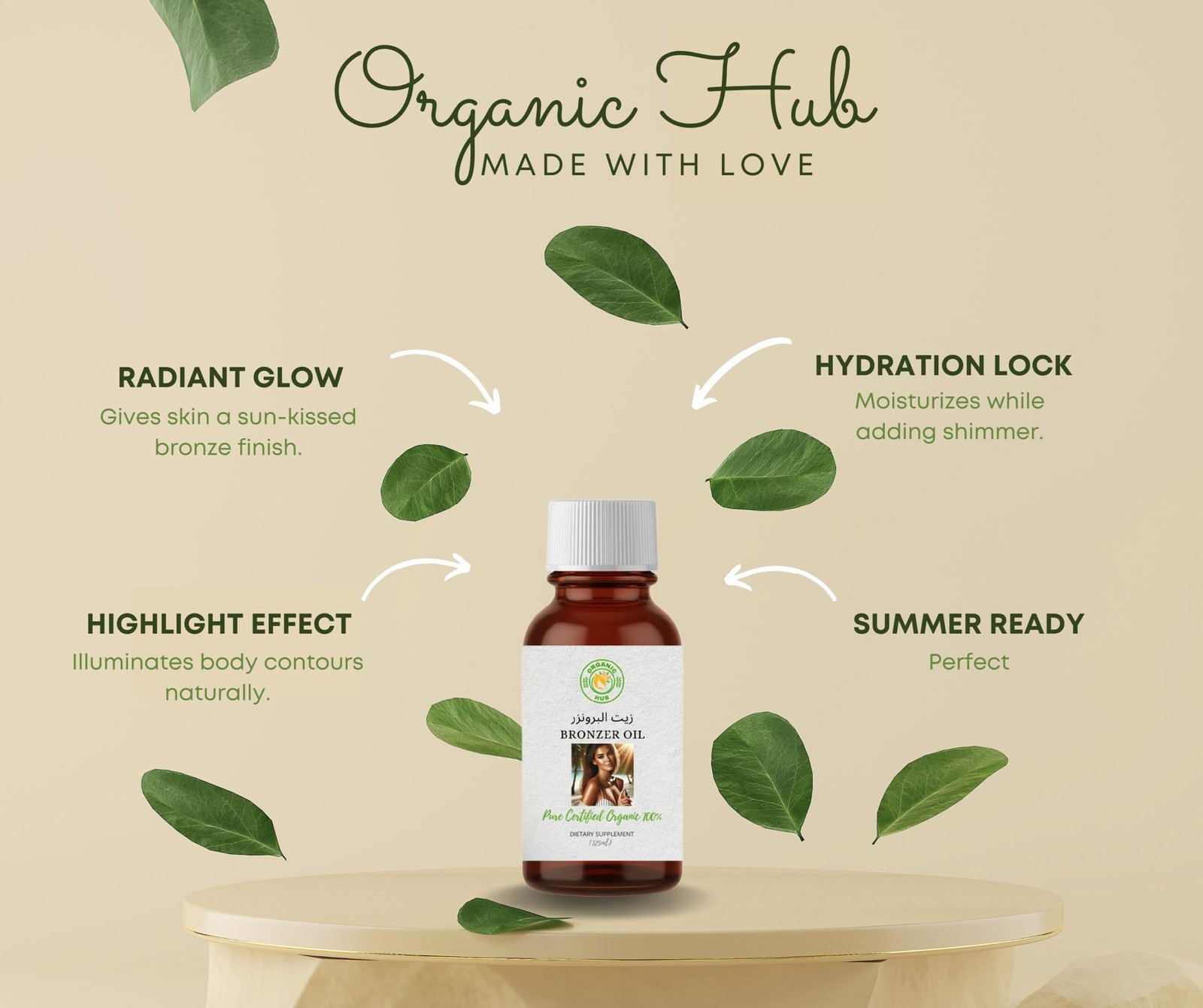 -20%With a unique formula, our bronzer oil blend will not only preserve the beauty of your skin with a glamorous, vibrant bronze tint, but will also provide your skin with active moisturizers and nutrients. Our bronzing oil blend is loaded with essential ingredients for skin health, such as vitamin E (anti-ageing), red musk oil (extra intense bronze color) and jojoba oil (which keeps your skin healthy and moisturizes to the deepest layers).